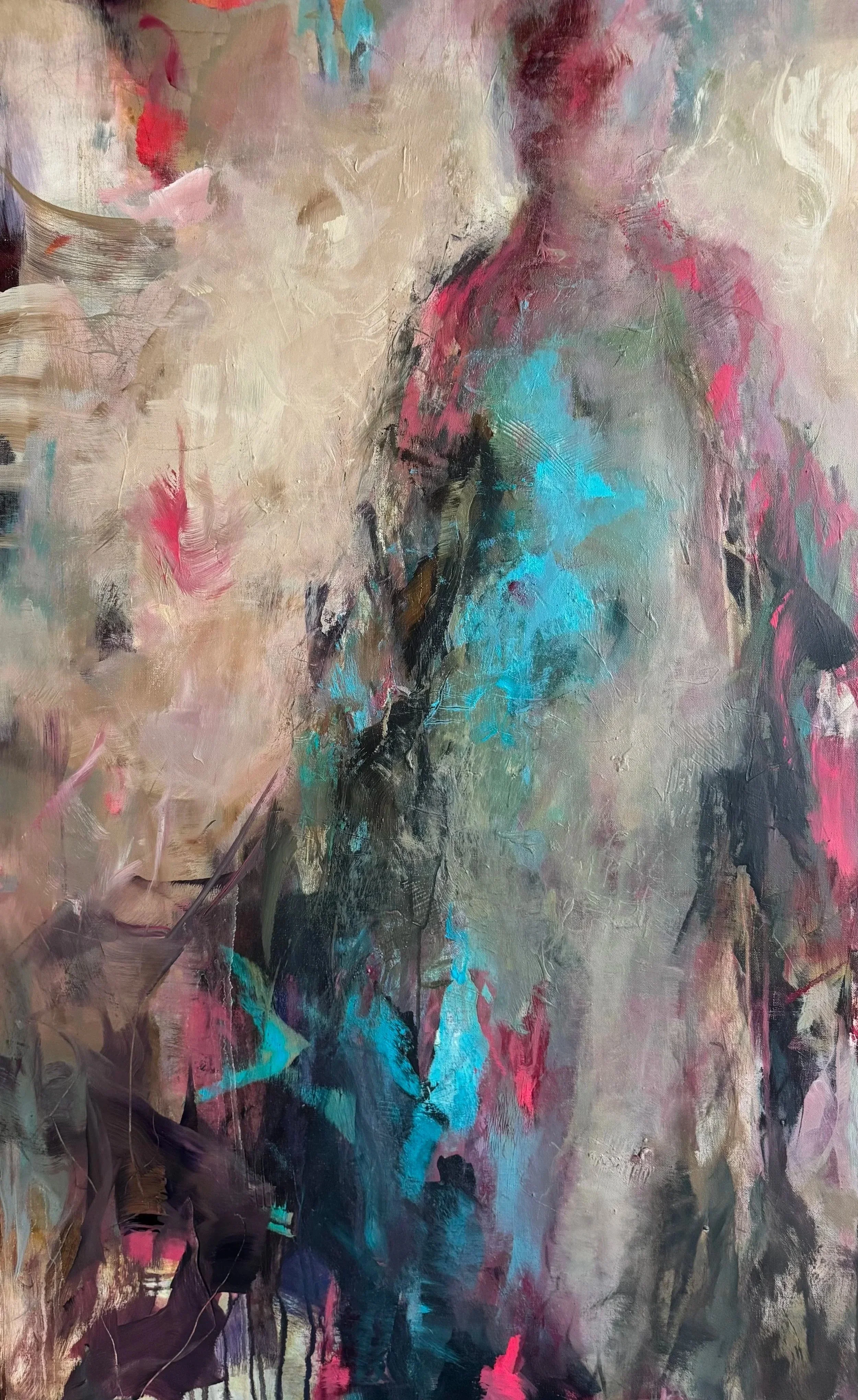 Transcendence explores feminine presence through layered abstract figurative form. The work began as intimate, ritual-based pieces and has gradually expanded in scale and structure.